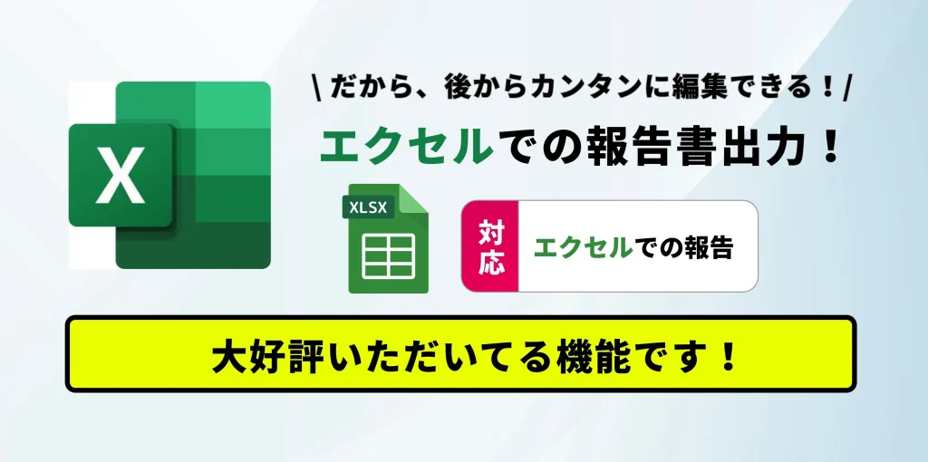 ご登録されているメールアドレスに作成したエクセルの報告書データが 届きます。PDFデータと違い、エクセルデータなので、現場でも、事務所やご自宅に戻った後でも、編集や微調整も簡単に行えます!